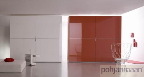 Модульные системы для спальни итальянской фабрики SMA. Шкаф с 2 дверями Цвет: матовый глянцевый лакированный красный/белый Ручки: хром Размер: Длина 292 см, глубина 62 см, высота 254 см.