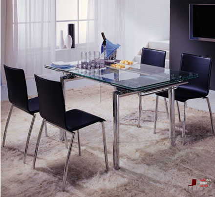 Обеденная зона (фабрика Linea Sedia, Италия). Раздвижной стол со стеклянной столешницей. Размер 140х85/200х85 (есть размер 170х90/240х90 см.) Ножки - аллюминий, хром, кожа 5 цветов (на выбор). Стул Dafne. Обивка - кожа 5 цветов. Цена указана за комплект из стола и четырех стульев.