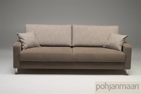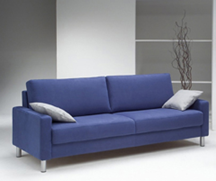 Модель «Easy» финской фабрики «Pohjanmaan».Размеры: 3-местный диван — 214×90хh86, 2-местный диван — 134×90хh86, кресло — 79×90хh86 см (на фото вместе с диваном Easy показано кресло Madeleine, кресло Easy по дизайну аналогично дивану Easy). 3-местный диван можно комплектовать спальным механизмом, в этом случае он выполняется только в ткани. На выбор есть 4 варианта подлокотников различной толщины, размеры диванов даны с учетом самых узких подлокотников (на фото). На заказ модель «Easy» может быть выполнена в одном из более чем 50 вариантов кожи, а также в ткани, фактуру и цвет которой Вы можете подобрать в салоне.